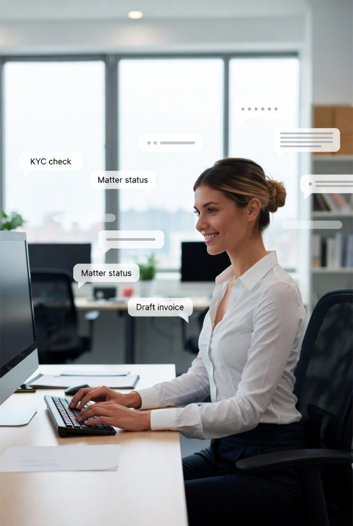 2. The Hands (The Automation Engine): This component runs in the background to complete workflows and actions, such as assisting with client intake or notifying a partner when an important milestone is reached.